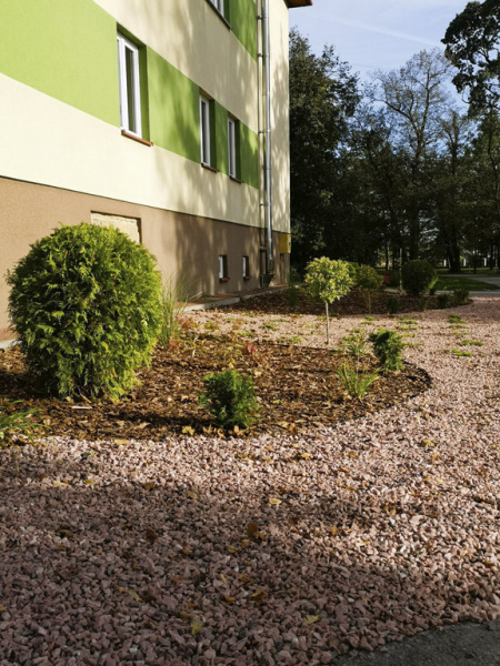Pierwszy etap modernizacji objął elementy infrastruktury oraz zieleni. W ramach przeprowadzonych prac istniejące alejki wyłożono kostką brukową, co znacząco poprawiło komfort użytkowników. Wykonano również zabiegi pielęgnacyjne w obrębie istniejącego drzewostanu oraz uzupełniono ubytki poprzez nowe nasadzenia parkowe.