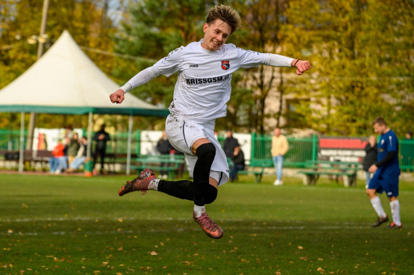 Od pierwszej minuty gospodarze przejęli inicjatywę, spokojnie konstruując akcje ofensywne. Wks nastawiony był na szybkie kontrataki, jednak przy tak młodym przeciwniku, nie było to łatwe zadanie. Mimo dużej przewagi gospodarzy, bezbramkowy remis utrzymywał się do 25 minuty, kiedy to na strzał z ok. 25 metrów zdecydował się Oskar Dyjak. Piłka po jego strzale wylądowała tuż pod potrzeczką bramki gości i miejscowi kibice mogli cieszyć się z prowadzenia ich zespołu. Do końca pierwszych 45 minut wynik nie uległ już zmianie.