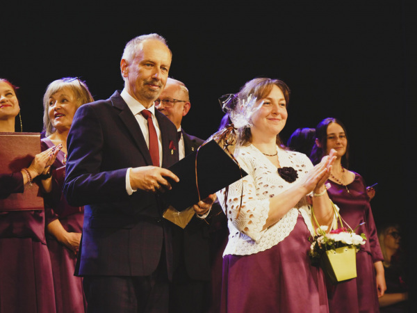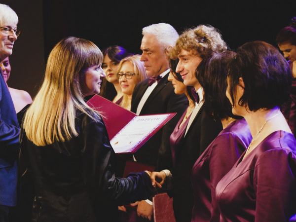 Jubileusz był także okazją do przekazania symbolicznego graweru z gratulacjami od prezydenta miasta Lucjusza Nadbereżnego oraz przewodniczącej Rady Miejskiej Agaty Krzek, skierowanego do dyrygentki Kateryny Serediuk, która dziś z pasją kontynuuje dzieło swojego mistrza. W treści gratulacji czytamy: