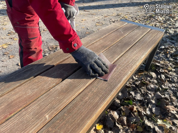 Po lecie i znacznej eksploatacji ławek stojących nad Sanem, czas doprowadzić je do stanu pierwotnego i zabezpieczyć przed zimą.
