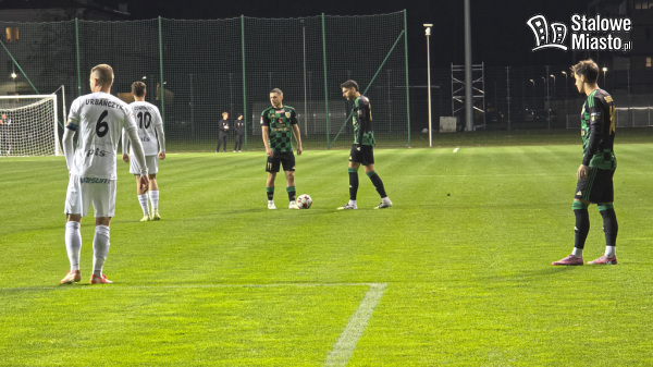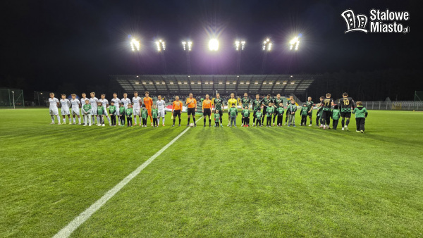 I połowa: rozpoczęła się celnym strzałem Dawida Wolnego na bramkę rywali. Od 2. minuty prowadziliśmy 1:0. I to, jak zwykle bywa, Stalówka na początku dyktowała warunki. Przyjezdni nie poddawali się. Ich determinacja sprawiła, że w 34. minucie strzałem z rzutu wolnego wynik wyrównał Szymon Jopek z Hutnika. Podwyższy rezultat mieli okazję zmienić i Surzyn, i Hebel, i Kendzia. Ale nic z tego nie wyszło. Pod koniec I połowy goście przejęli inicjatywę, ale na przerwę schodziliśmy z remisem.