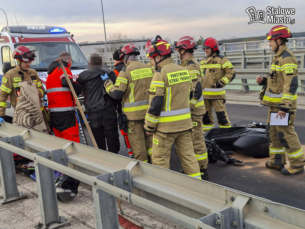 Wypadek na wiadukcie. Ranny motocyklista w szpitalu