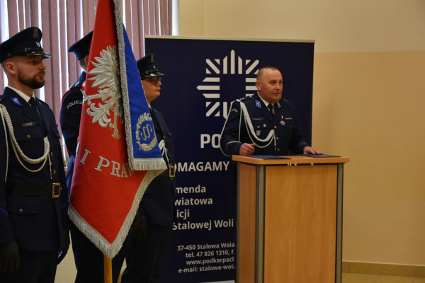 Podczas uroczystości mł. insp. Mariusz Stasiak pożegnał się ze sztandarem jednostki oraz złożył Zastępcy Komendanta Wojewódzkiego Policji w Rzeszowie mł. insp. Piotrowi Stępce, meldunek o zdaniu stanowiska Komendanta Powiatowego Policji w Stalowej Woli, które objął styczniu 2025 roku. Mł. insp. Mariusz Stasiak z dniem 9 stycznia br., zostaje szefem Komendy Powiatowej Policji w Leżajsku.