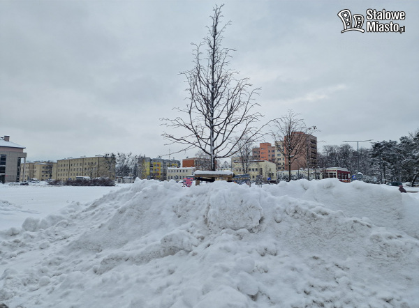 Niestety, nie zawsze prace związane z odśnieżaniem są prowadzone w sposób właściwy. To drzewko posadzono niedawno, jest jeszcze małe, więc dostało podpórki stabilizujące. Czy one utrzymają napór śniegu, który jest bardzo ciężki?