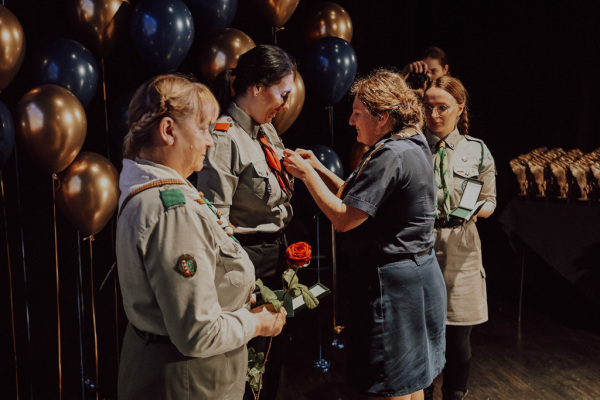 Szczególnie podniosłym momentem było wręczenie odznaczeń ogólnozwiązkowych. Zastępczyni Komendantki Hufca Stalowa Wola, phm. Sylwia Komada- Bober, została uhonorowana Brązowym Krzyżem za Zasługi dla ZHP, jednym z najwyższych wyróżnień instruktorskich. Odznaczenie, przyznawane przez Przewodniczącego ZHP, wręczyła Komendantka Chorągwi Podkarpackiej hm. Daria Froń. Tego samego wieczoru druhna Sylwia otrzymała także „Orle Pióro”, specjalne wyróżnienie przyznawane na wniosek komendanta hufca, co dodatkowo podkreśliło jej wieloletnie zaangażowanie i autorytet wychowawczy.