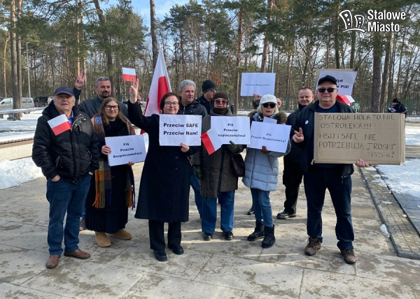 Przypomnijmy, że przeciwko ustawie było Prawo i Sprawiedliwość i Konfederacja. Z tego też powodu, w miniony wtorek, Koalicja Obywatelska zorganizowała w Stalowej Woli konferencję prasową. Również w sobotę, politycy koalicyjni pojawili się przed Muzeum COP. Trzymali różnego rodzaju hasła (Przeciw SAFE- Przeciw Nam, PiS przeciw bezpieczeństwu, Stop Hipokryzji, Zdrajcy PiS), a wśród nich można było zobaczyć: posła Pawła Kowala, posła Marka Rząsę, radnych Sejmiku Podkarpackiego Krzysztofa Kłaka i Renaty Butryn oraz innych.