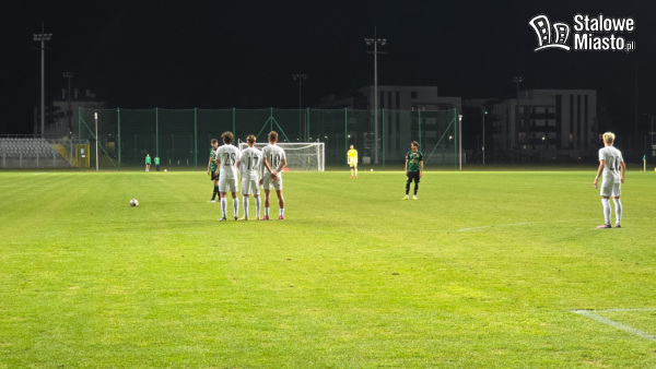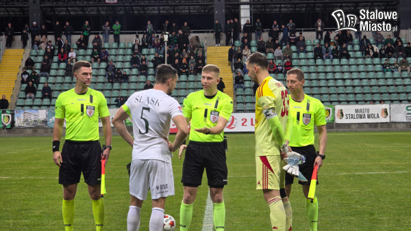 I połowa: W 16. sekundzie padła pierwsza bramka. Strzelił ją Maciej Jaroszewski, nasz zawodnik, ale do bramki przeciwnika. Piłka odbiła się od jego buta i ominęła Smyłka. Zaczęliśmy więc w koszmarny sposób. Zaplecze Śląska stwarzało okazje i młodzieżowa, można rzec drużyna, radziła sobie całkiem dobrze. Stalówka popełniała błędy i grała nieco oszołomiona utratą pierwszej bramki. Mieliśmy trudności z dotarciem do pola karnego, a gdy się nawet udało podejść z piłką bliżej, obrona Śląska już tam była blokując skutecznie dostęp do własnej bramki. Po około 10. minutach gra się nieco wyrównała, ale nie obserwowaliśmy dobrych akcji. Stalówka kilka minut później ożywiła się. Częściej gościła na połowie przyjezdnych. W 20. minucie Piotr Żemło dostał żółtą kartkę za faul na zawodniku ze Śląska. W 23. minucie Hebel z dystansu próbował wrzucić futbolówkę do bramki, ale bramkarz Śląska pewnie złapał piłkę. Spotkanie było spokojne, bez fajerwerków, brakowało dynamiki chociażby takiej, jaką oglądaliśmy podczas ostatnich dwóch spotkań. W 30. minucie Getinger został kopnięty w stopę, konieczna była interwencja medyczna. Gra na chwilę została przerwana. Zielono- czarni próbowali atakować, częściej bywali w polu karnym rywali. W 41. minucie Lelek dostał żółtą kartkę. Do I połowy doliczono 3 minuty. W 46. minucie Radecki zdążył jeszcze zobaczyć żółty kartonik. Schodziliśmy do szatni pokonani.