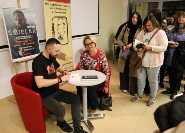 O to, aby Michała Śmielaka zaprosić do Miejskiej Biblioteki Publicznej prosiło wielu czytelników. Udało się 19 marca 2026 roku. Na spotkaniu autorskim w Bibliotece Głównej sandomierzanin opowiedział o swoich najnowszych kryminałach. Wspólnie z dyrektor MBP, Beatą Życzyńską wręczył również nagrody i dyplomy dla Czytelników Roku 2025.