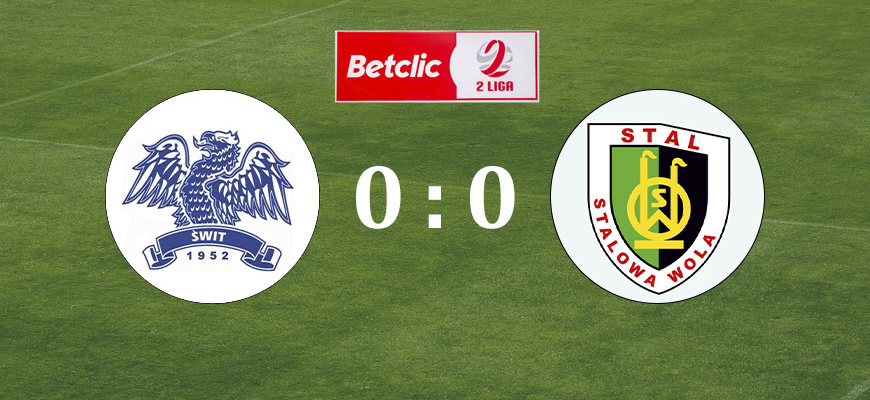 II połowa: rozpoczęła się bez zmian w obu drużynach. W 48. minucie o mały włos nie straciliśmy bramki. W 49. minucie Radecki dostał żółtą kartkę. Teraz zawodnicy Świtu częściej atakowali. W 58. minucie Smyłek miał dużo szczęścia bo piłka uderzyła tylko w słupek i sama wpadła w jego ręce. Tym samym i tym razem się udało. W 62. minucie Hrnčiar kopnął piłkę w stronę bramki gospodarzy, ale skierował ją obok słupka marnując wspaniałą okazję. Stalówka jednak wciąż nacierała i próbowała otworzyć wynik meczu. W 68. minucie na murawę weszli Lelek i Morawiec, a zeszli Radecki i Kendzia. W 73. minucie konieczna była zmiana w drużynie gospodarzy, Maciej Koziara ze Świtu na noszach został zniesiony z boiska, bo podczas wyskoku wylądował na jednej nodze doznając kontuzji. Na uszkodzonej murawie wiele było upadków, zawodnicy ślizgali się na piasku. W 74. minucie w miejsce Śpiewaka wszedł Wolny. Na murawie pojawił się też Sobeczko za Tomalskiego. W 80. minucie mogło dojść do karnego na rzecz Stalówki, przed samą bramką Furtak był prawdopodobnie faulowany, ale sędzia akurat nie spojrzał w tamtym kierunku, a w 2 lidze nie ma WAR-u. Trudno więc ocenić czy ten karny na pewno się należał. Jedenastki nie było i mecz toczył się dalej. W 82. minucie znów niewiele brakowało by Wolny strzelił gola, niestety piłka uderzyła w słupek. Chwilę później Wolny dostał żółtą kartkę. W 85. minucie Kacper Morawiec także zobaczył żółty kartonik. Do II połowy doliczono 6 minut. Jeszcze na koniec, po błędzie Sobeczki, mogliśmy stracić bramkę. Na szczęście do tego nie doszło. Z murawy schodziliśmy z bezbramkowym remisem.