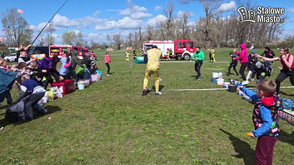 W poniedziałek wielkanocny, na stalowowolskich błoniach, zorganizowano wielki śmigus- dyngus. W szranki stanęli: dzieciaki i dorośli, mamy i tatusiowie, ciocie i wujkowie, babcie i dziadkowie, a w tle wiele śmiechu i mnóstwo wody.