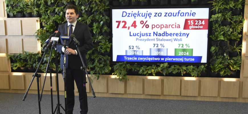 Przypomnijmy, że Lucjusz Nadbereżny, jak to ma w zwyczaju, wygrał bez problemu po raz trzeci, w pierwszej turze. Mieszkańcy Stalowej Woli nie mieli wątpliwości, że musi kontynuować swoją prezydenturę. 8 kwietnia 2024 roku głos oddało na niego 15 234 obywateli hutniczego grodu, co oznacza aż 72,41% poparcia. 2 miejsce zajął wówczas Damian Marczak- 4 434 głosy (21,08%), a 3: Kamil Maciejak- 1 371 głosów (6,52%). Trzecie zaprzysiężenie miało miejsce 7 maja 2024 roku.
