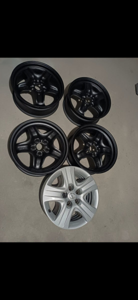 Felgi strukturalne opel 5x120, et41, piasta 67,1mm z kolpakami. Felgi byly piaskowane i pod spodem malowane epoxydem. Gotowe do zalozenia.