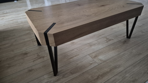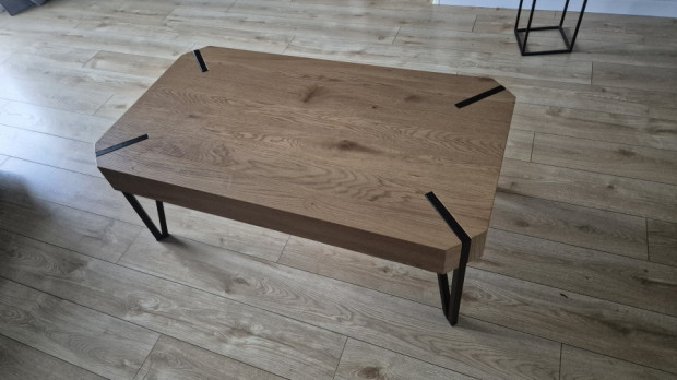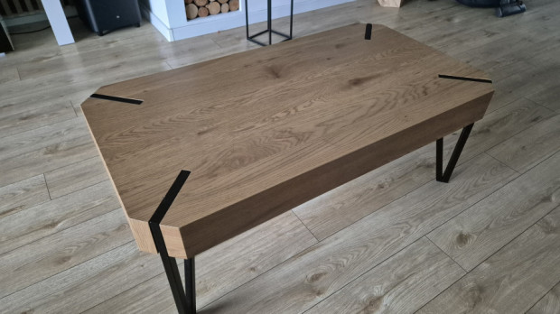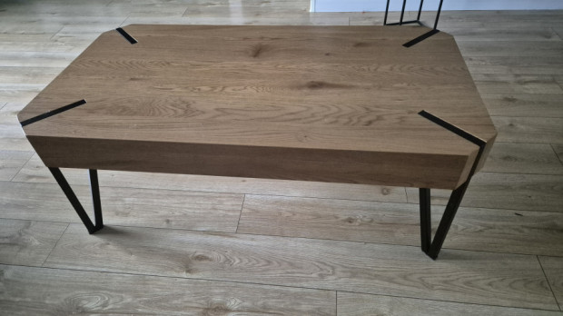Stolik kawowy w kolorze dębu z metalowymi nogami. Polecam