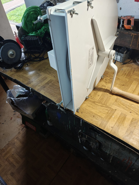 szatkownicę na korbę Typ SZT-370 do szatkowania kapusty produkcji polskiej.Obudowa stalowa przykręcana do blatu