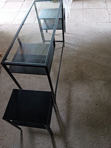 Stolik metalowo -szklany