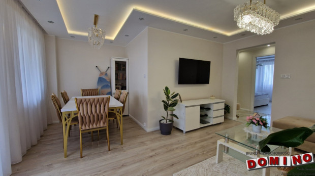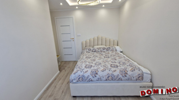 W 2024 roku nieruchomość przeszła generalny remont, który objął dosłownie każdy element – od wylewek i prostowania ścian po zabudowę meblową oraz detale wykończeniowe. Położono panele o wysokiej klasie ścieralności, zamontowano drzwi zewnętrzne antywłamaniowe, drzwi wewnętrzne, bez przylgowe firmy DRE – nowoczesne, minimalistyczne, idealnie wpisujące się w całość aranżacji, oraz w całym mieszkaniu podwieszane sufity wraz z oświetleniem ledowym. Łazienka wykończona płytkami o ciekawym kolorze, prysznic wygodny, duży z odpływem liniowym. Dla podniesienia komfortu mieszkańców zainstalowano w salonie klimatyzator z funkcją chłodzenia i grzania. Aby móc wygodnie mieszkać w przedpokoju postawiono dużą, zabudowaną szafę. Całość została wykończona pozłacanymi dodatkami, stylowymi żyrandolami i pięknymi meblami – detale, które robią różnicę i podkreślają styl glamour. W mieszkaniu nie ma termy – co oznacza większą wygodę i bezpieczeństwo. Miesięczny czynsz wynosi ok. 1000 zł (plus prąd i gaz).