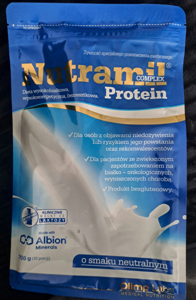 Oryginalnie zamknięta odżywka Nutramil Protein. Została paczka po kuracji. Data ważności 03.2026r. Cena w sklepie ok. 80 zł.