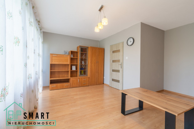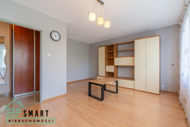 W salonie na podłodze panele, płytki w kuchni, łazience i przedpokoju. Okna plastikowe, ogrzewanie miejskie, ciepła woda z sieci.