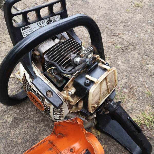 Do sprzedania widoczna pila spalinowa stihl ms 171 używana w pelni sprawna łańcucha raczej do wymiany