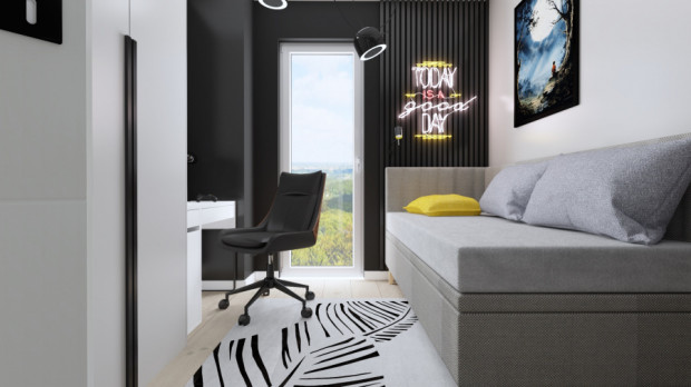 - kuchnia połączona z salonem, z którego jest wyjście na ogród,