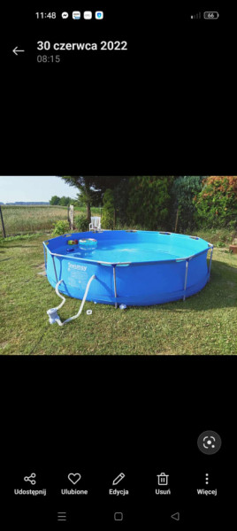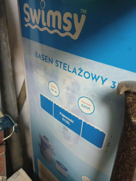 Sprzedam basen stelażowy firmy Swimsy o średnicy 3,6 metra i pojemności 5377 litrów wraz z pompką i oryginalnym opakowaniem. Przed świętami można użyć pod sprzedaż karpia a w lecie do kąpieli :D