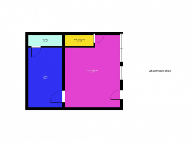 LOKAL MNIEJSZY - ZESTAWIENIE POWIERCHNI 42 m2: