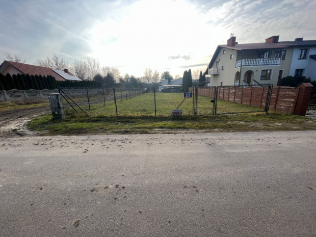 Dojazd do działki drogą asfaltową. Działka jest ogrodzona płotem z siatki.
