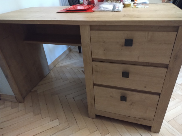 Sprzedam duże biurko, wymiary 55 x 120, stan bardzo dobry,3 głębokie szuflady, dodatkowa półka pod blatem biurka, odbiór Stalowa Wola