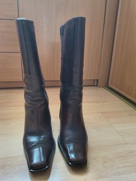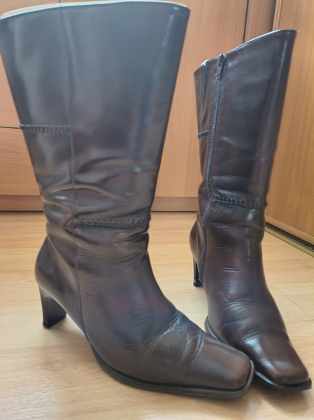 Sprzedam kozaczki skórzane damskie. Rozmiar 36 na szeroką łydkę. Kolor brązowy.