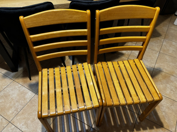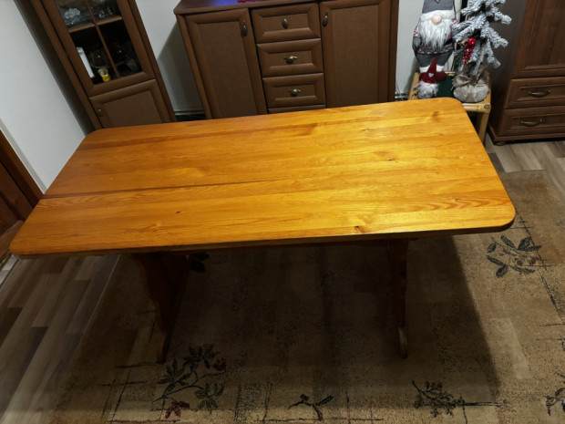 Meble wykonane z litego drewna, bardzo stabilne i zadbane. Normalne ślady użytkowania, bez uszkodzeń konstrukcyjnych.