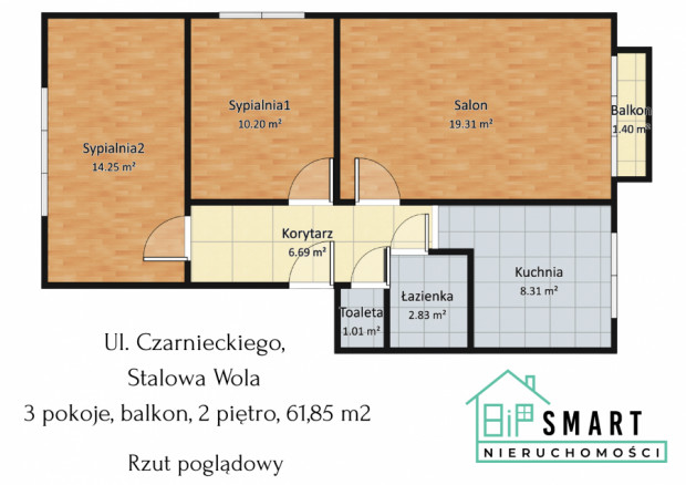 Biuro BIP Smart Nieruchomości ma przyjemność zaoferować Państwu na sprzedaż 3-pokojowe mieszkanie o powierzchni 61,85 m², które znajduje się na 2. ostatnim piętrze w bloku przy ul. Czarnieckiego 10 w Stalowej Woli.