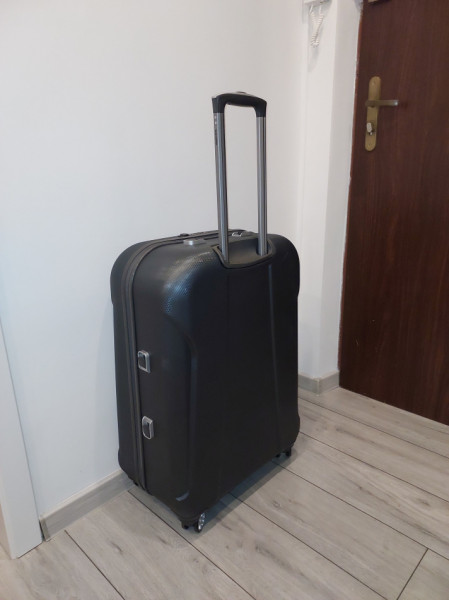 Sprzedaje tanio, ponieważ brakuje jej uchwytów do przenoszenia. Jedynie da się wyciągnąć rączkę i pchać na kółkach.