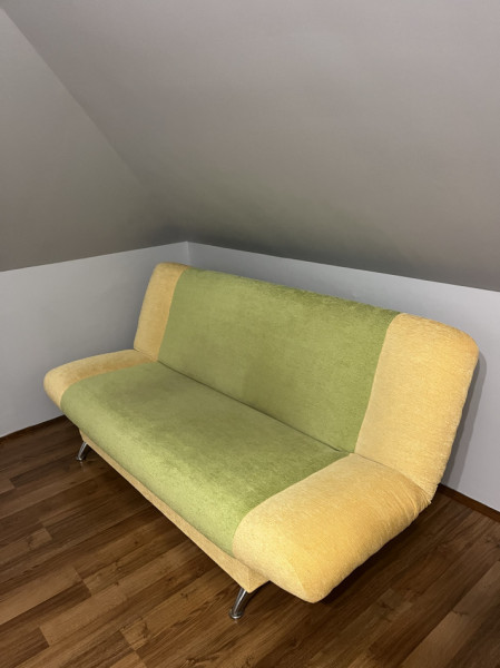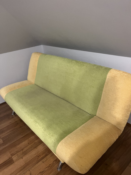 Sprzedam kanapę z materiału, w kolorze zielono/żółtym oraz dwa fotele do kompletu. Kanapa jest używana natomiast fotele są w stanie idealnym. Kanapa również jest rozkładana oraz posiada miejsce do przechowywania rzeczy. Wymiary kanapy to 200x120cm.