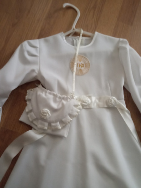 Suknia komunijna z torebką.