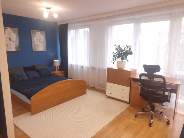 - duża, dobrze doświetlona sypialnia z garderobą i balkonem
