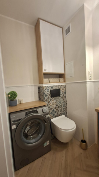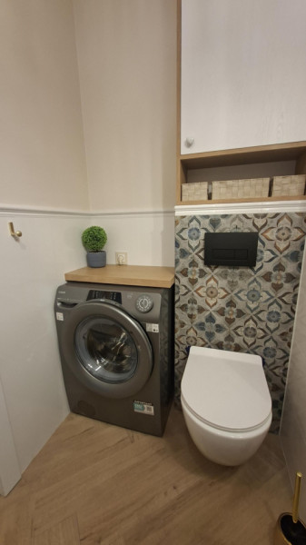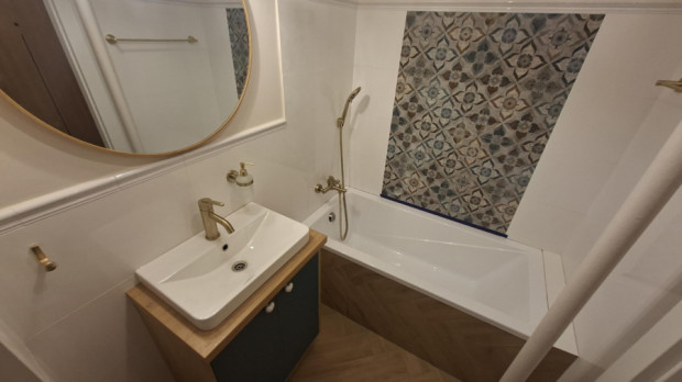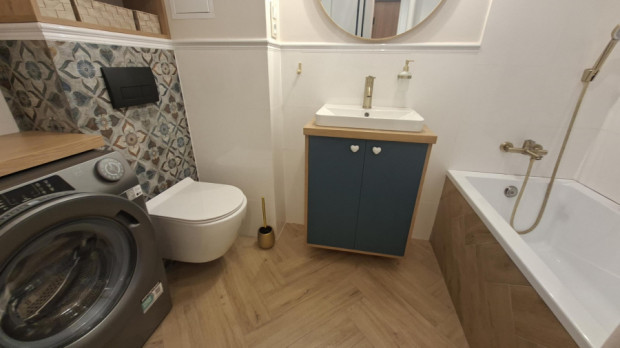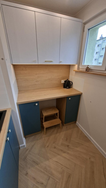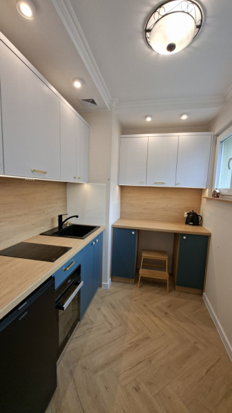 Mieszkanie całkowicie wykończone i świeżo wyremontowane . Okna PCV, instalacja wodno-kanalizacyjna PCV, instalacja elektryczna wymieniona. Kuchnię wyposażono w: meble na zamówienie z cichymi domykami, płytę indukcyjną, zlew granitowy, lodówkę. Łazienka z pralką.