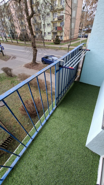Składa się z 1 dużego pokoju, kuchnią z oknem, dużej łazienki z wc oraz dużego balkonu.