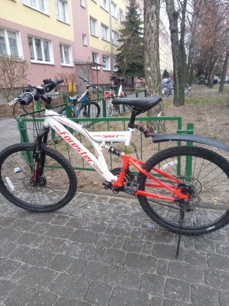 Sprzedam w pełni sprawny rower MTB marki Romet model Forester. Koła 24' w komplecie stopka i plastikowy błotnik z tyłu, hamulce tarczowe, przerzutki zewnętrzne.