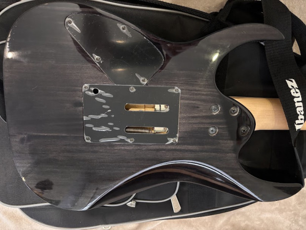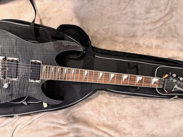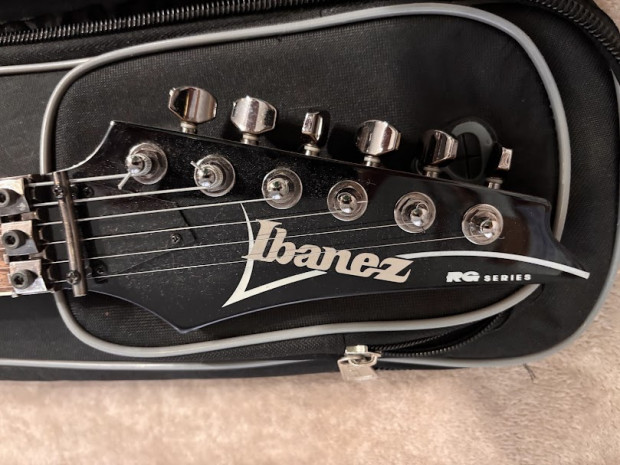 Ibanez RG320DXFM + Wzmacniacz Soundking SKAK030A. Gitara ma jedno uszkodzenie widoczne na zdjeciu. Do gitary dodaje miękki