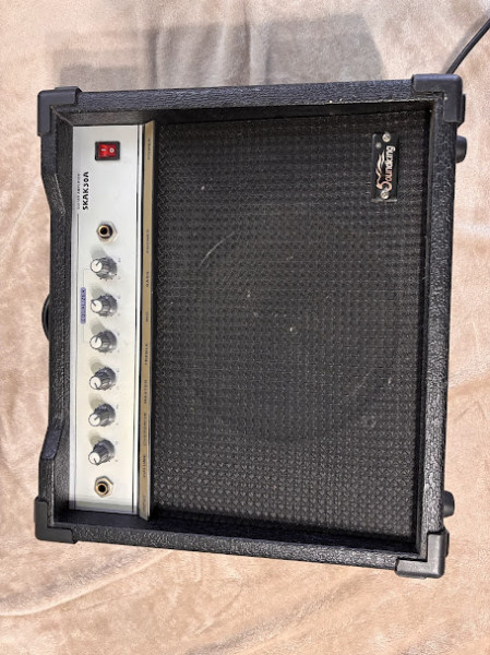 futerał Ibanez. Wzmacniacz SKAK030A- do ćwiczeń w domu dla początkujących. Wyposażony w dwa kanały dla czystego brzmienia gitary i przesterowanego brzmienia gitary z regulowanym stosunkiem między czystym a przesterowanym brzmieniem. Moc 40 W wystarcza do gry w domu. Głośnik 8" z korekcją tonów wysokich, średnich i niskich, wyjście liniowe/słuchawkowe oraz wejście na przełącznik nożny.