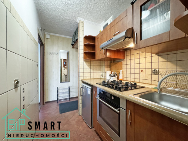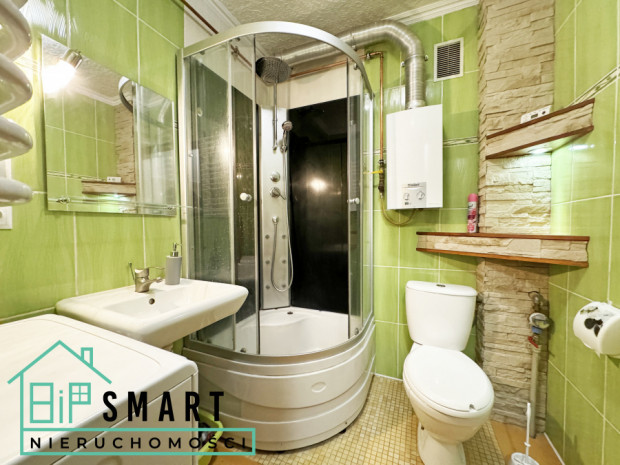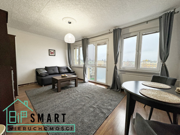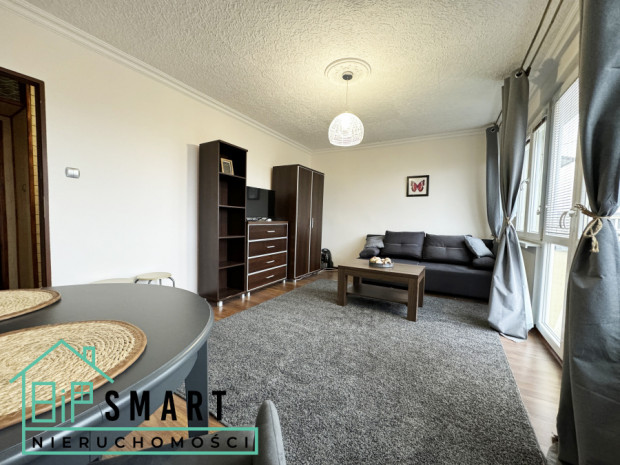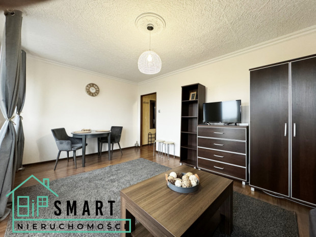 Lokal składa się z dużego jasnego salonu z wyjściem na balkon, kuchni, łazienki z prysznicem oraz przedpokoju. Okna PCV, na podłogach panele, w korytarzu, kuchni i łazience płytki. Do dyspozycji najemcy są wszystkie sprzęty i meble widoczne na zdjęciach. Ogrzewanie miejskie, ciepła woda z termy gazowej. Miejsca postojowe dla mieszkańców na parkingu pod blokiem.