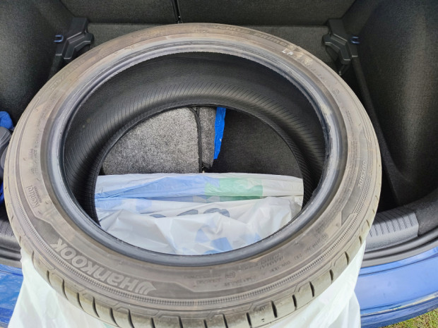 Opony zdjęte z nowego samochodu VW Taigo, użytkowane przez okres około 3 miesiące, w tym czasie pokonały tylko 2000 km, dlatego są jak nowe.