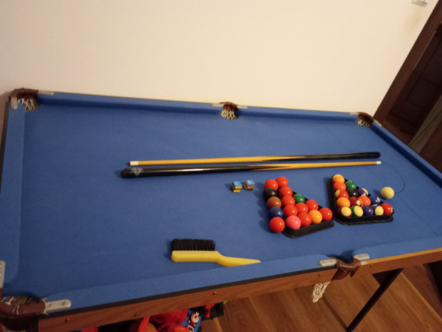 Sprzedam stół do bilarda w bardzo dobrym stanie, mało używany. W zestawie dwa kije, kreda bile do bilarda i snookera, dwa trójkąty, szczoteczka do czyszczenia płótna. Cena 200zl, odbiór osobisty w Grębowie