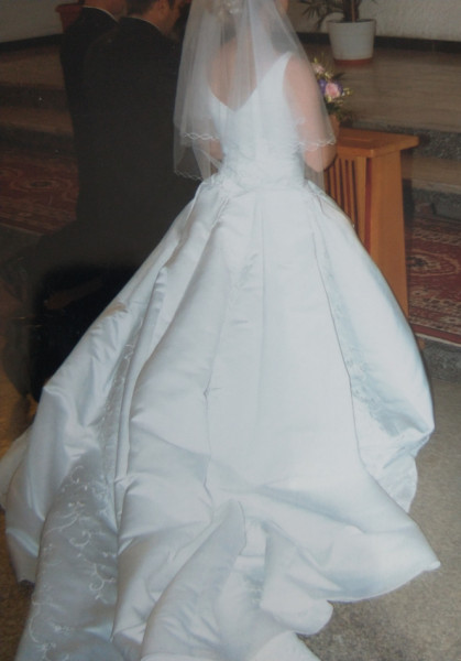 Jedwabno-satynowa suknia ślubna z trenem