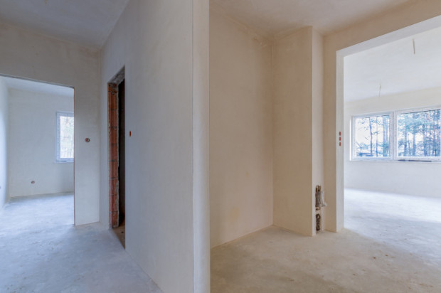 Wewnątrz wykonano tynki gipsowe (w łazienkach tynki wapienno -cementowy), co znacząco przyspiesza dalsze prace wykończeniowe.