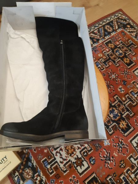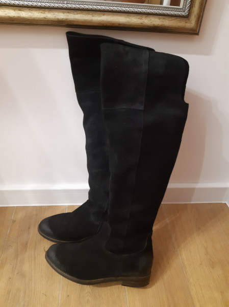 Sprzedam buty za kolano z naturalnej skóry zamszowej.Modne przetarcia na butach.