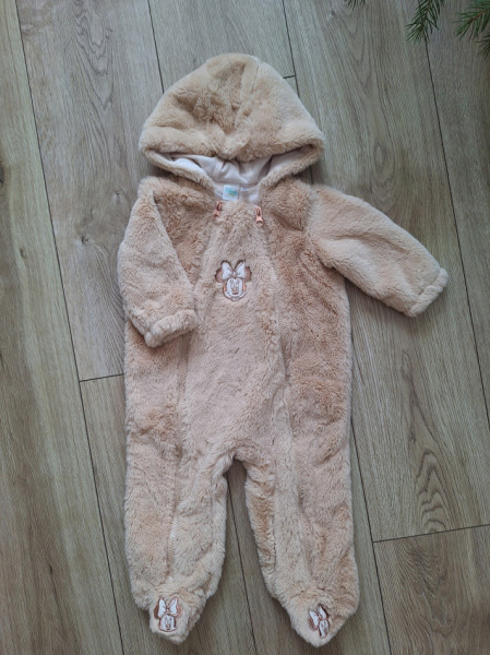Kombinezon niemowlęcy nie jest on gruby, ale do fotelika sie nada na zimę + dodatkowo kocyk. Rozmiar 62-68, licencja Disney Minnie, Rozpinany na 1 zamki, co znacznie ułatwia wkładania i wyjmowanie bejkika, co zaoszczędzi nerwów Wam i dziecku :) kolor morelowy, beżowy