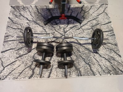Siłownia domowa: Obciążenia ok 145 kg. Worek. Gryf długi. 2 gryfy łamane. Wyciąg. Rowerek. 2 ławki regulowane. Stojaki 2 x jedne łączone i drążek do podciągania. Uchwyty do wyciągów. Sztangielki skręcane. Prasa na nogi.Modlitewnik. mata pod sprzęt. Odbiór we własnym zakresie w Gorzycach.