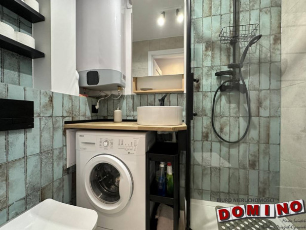 Mieszkanie o powierzchni 43 m2, składa się z 2 sypialni, salonu z aneksem kuchennym, łazienki i przedpokoju. W kuchni biała zabudowa ze sprzętem AGD. W łazience przestronna kabina prysznicowa oraz pralka. W sypialniach nie ma mebli, w przedpokoju duża szafa.
