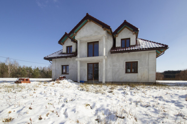 Pokrycie dachu: dachówka ceramiczna, zamontowane okna PVC w kolorze biały/orzech, profil Salamander. Zamontowane elektryczne rolety zewnętrzne, podtynkowe.